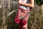 Hlavným prvkom týchto originálnych kabeliek je gobelínova látka, ktorá je doplnená brúsenou kožou. Je vhodná na nosenie len tak cez rameno alebo aj cross body. Kabelka sa uzatvára pomocou zipsu a je podšitá pevnou bavlnenou látkou, pričom vo vnútornej časti má malé vrecko.