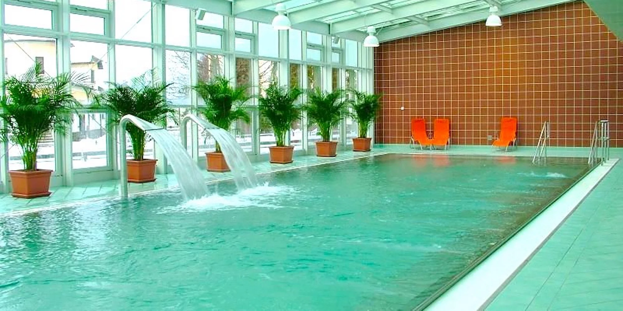 Čakajú na vás vonkajšie aj vnútorné bazény, plavecký bazén s chrličom, bazén s atrakciami ako divoká rieka, hojdací záliv, vodné dielo s chrličom, vodné lehátka a šmykľavka. Vo vnútorných priestoroch nájdete tiež sedací bazén kruhového tvaru.