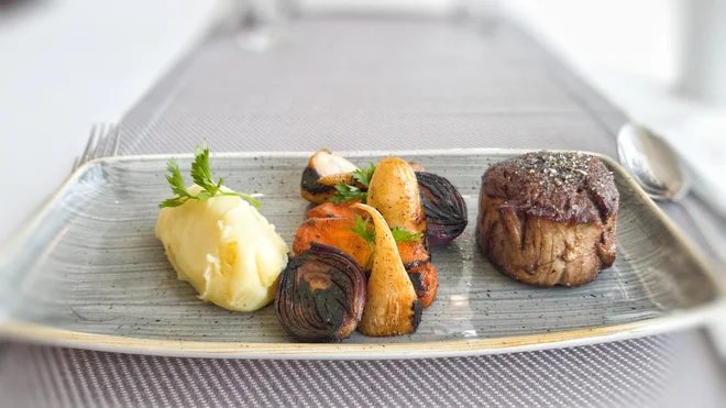 O tom, že sa máte na čo tešiť svedčí aj skutočnosť, že tunajší šéfkuchár je víťazom strieborných a bronzových medailí z kulinárskej olympiády v Erfurte 2016. Navyše tu ako jediní v regióne robia hovädzie steaky z rasy Galloway. K tomu všetkému nechýba ani pestrý výber kvalitných vín, pivo Grinbergen a panoramatický výhľad z baru Blue Sky.