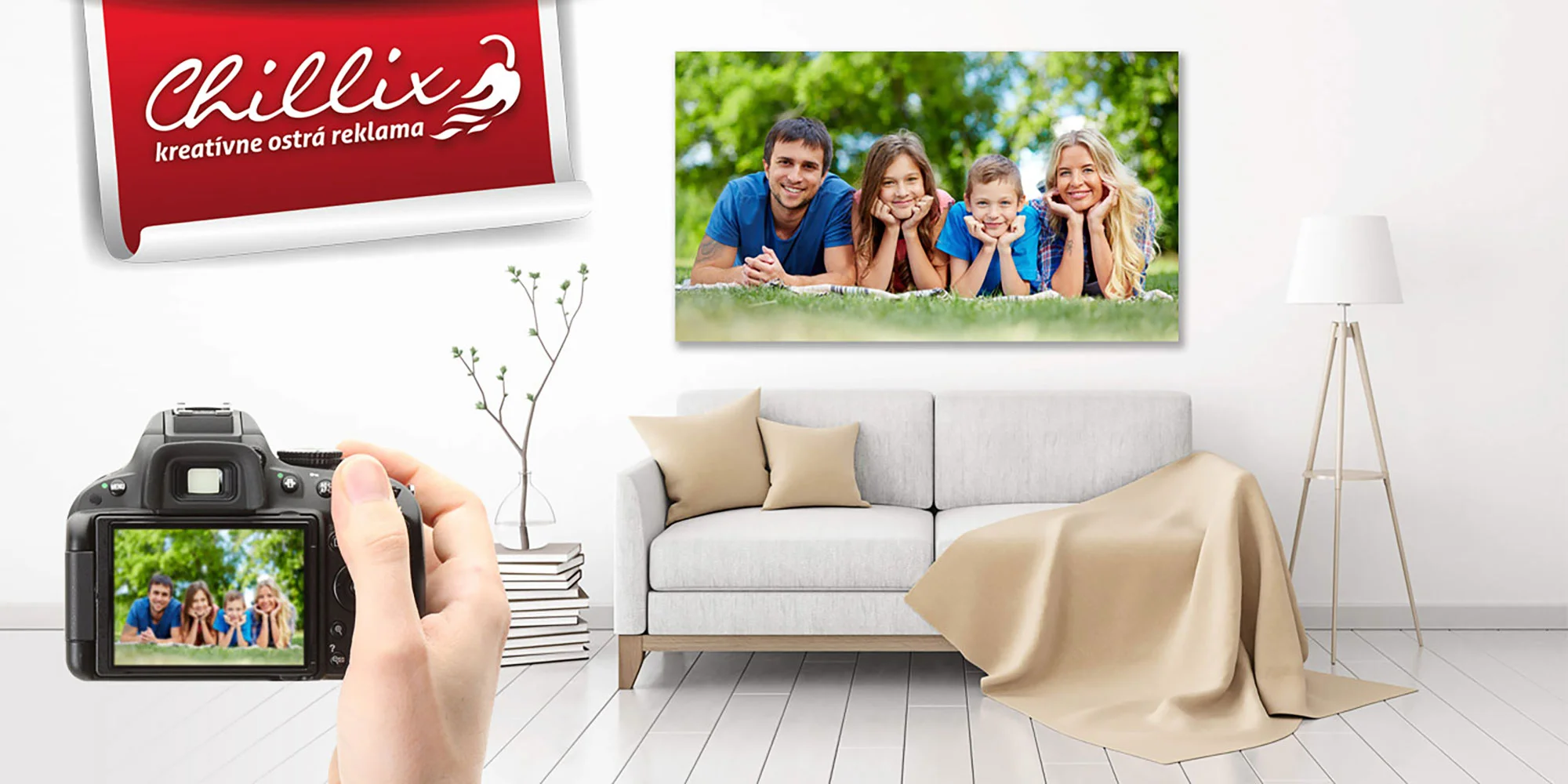 Reklamná agentúra Chillix vám z vašich fotografií vytlačí obraz na kvalitnom fotoplátne. Je napnutý na skrytý pevný drevený rám. Stačí si už len vybrať formát, ktorý vám vyhovuje najviac.