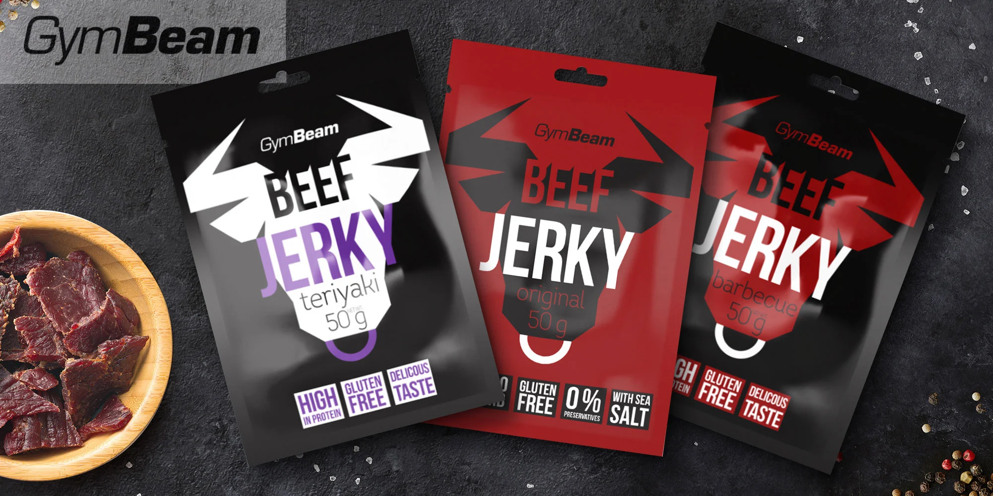 Doprajte si poriadne výživnú desiatu! Beef Jerky vzniká krájaním mäsa na tenké plátky a následným sušením – na výrobu 100 g lahodného sušeného mäsa bolo použitých až 320 g surového hovädzieho. Jerky sa vyznačuje vysokým podielom proteínov, obsahuje 32 g (64 %) bielkovín na 50 g mäsa, minimom tukov a nulovým obsahom sacharidov. Navyše, vďaka výrobe pomocou moderných technológií si sušené mäso zachováva čerstvosť a nutričné benefity aj dlho po otvorení.