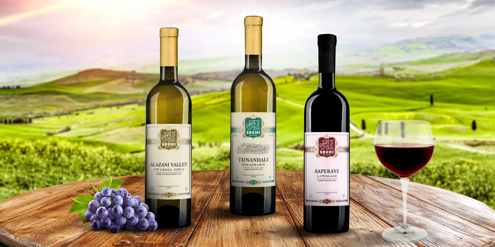 Po otvorení fľaše vás čakajú vína vyrobené z autochtónnych gruzínskych odrôd viniča, za použitia moderných vinárskych výrobných metód, kde je vyzdvihnutý predovšetkým odrodový charakter. Nakombinujte si sety týchto unikátnych vín podľa seba. Na výber máte: