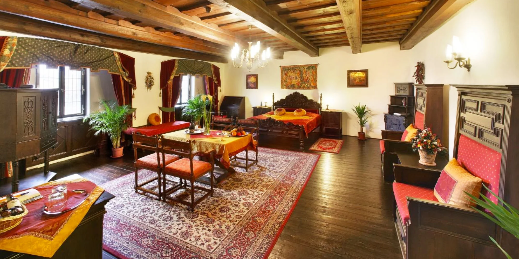 Personál vám pripraví izbu alebo apartmán s dobovým nábytkom, kde si budete pripadať ako zámockí páni. Nechýbajú však ani moderné vymoženosti, je tu všetko potrebné – od klimatizácie, cez kanvicu na prípravu kávy a čaju až po chladničku. Samozrejmosťou je bezplatné Wi‑Fi pripojenie na internet, telefón, satelitná TV a kúpeľňa so sušičom vlasov.