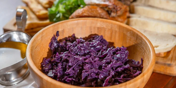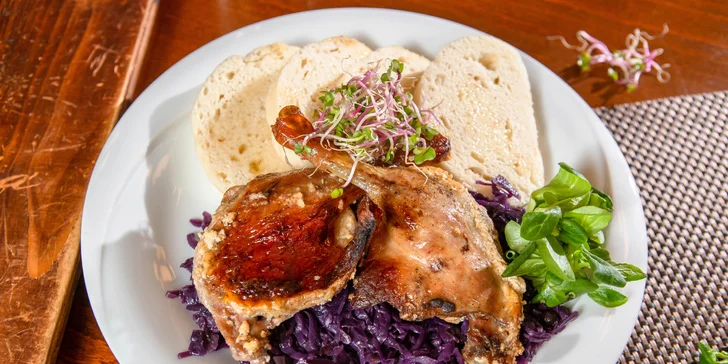 V ponuke sú dva neodolateľne rozváňajúce varianty. Menu pre 1 osobu tvoria konfitované kačacie stehná s domäkučka udusenou červenou kapustou a parenými knedľami. K tomu si môžete vybrať čapovaný nápoj z ponuky. A ak chcete zabezpečiť parádnu hostinu celej rodine, objednajte si rovno celú kačicu – zasýti istotne 4 osoby.