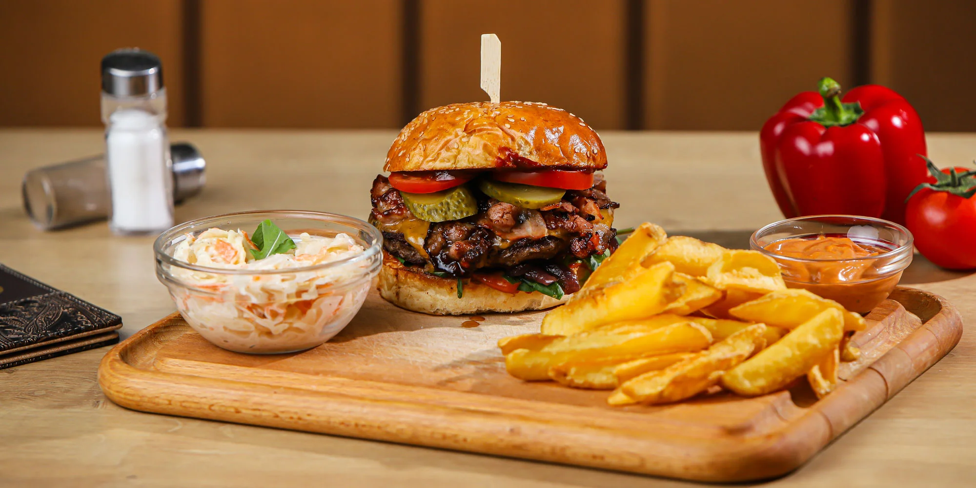 - Gurmán Chilli burger + hranolčeky, coleslaw šalát a dresing