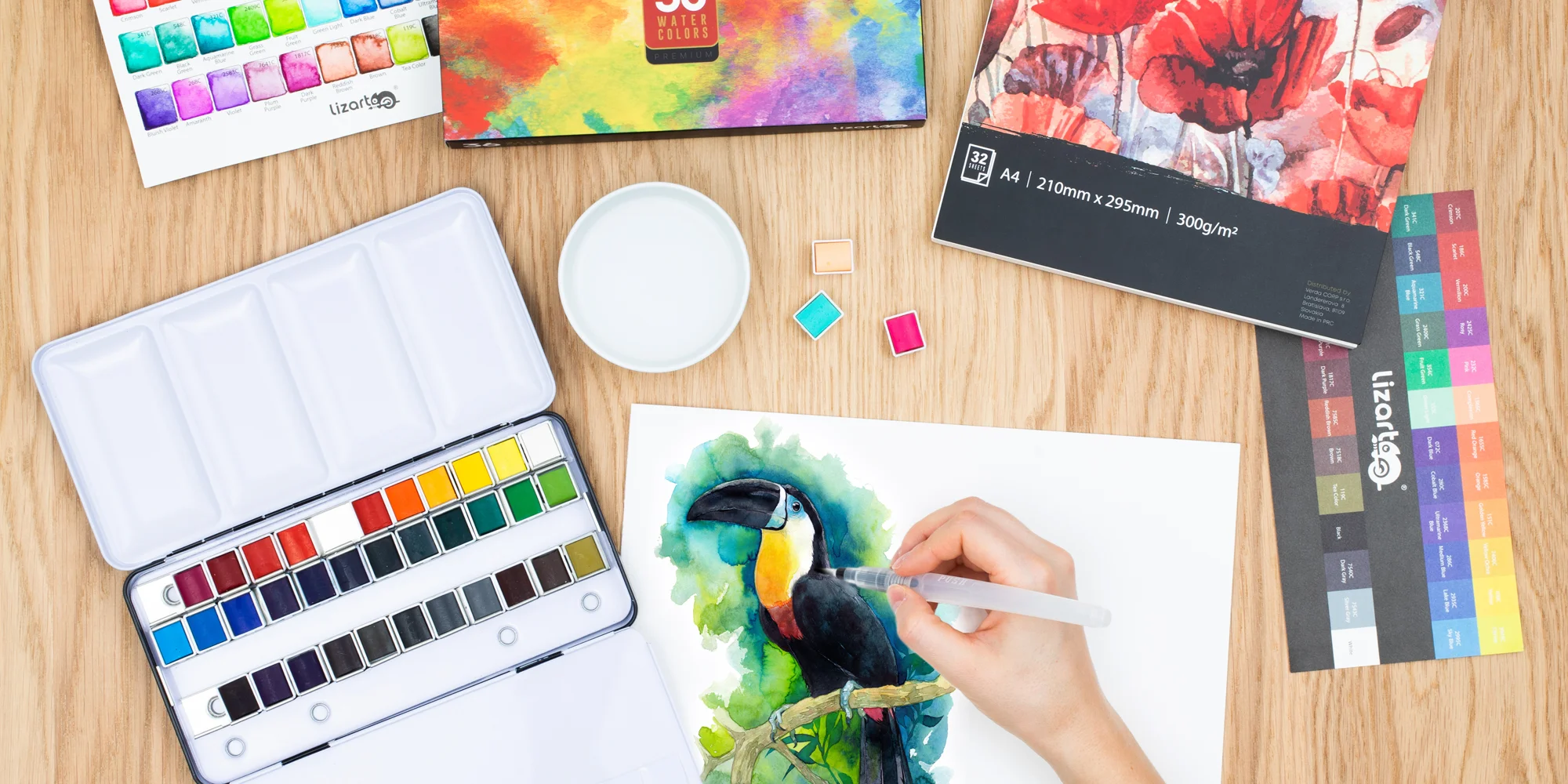 Perfektná sada 36 žiarivých akvarelových farieb s vodou plniteľným štetcom a kovovým puzdrom, ktoré slúži aj ako paleta, je vhodná pre každého maliara – začiatočníka aj profesionála. Živé farby sú silno pigmentované a poskytujú umelcom zakaždým sýtu farbu. Rýchloschnúca akvarelová farba skracuje dlhé čakanie spojené so sušením vašich akvarelových vrstiev. Tieto prémiové akvarelové farby sa vodou reaktivujú a umožňujú vám vrátiť sa k maľbe vtedy, keď vás chytí kreatívna chvíľka. Každá akvarelová farba je opakovane použiteľná, jednoducho ju pokropte trochou vody a pokračujte v práci. Vodou plniteľný štetec, ktorý je súčasťou tejto sady, umožňuje vytvárať nádherné akvarelové efekty bez tažkostí a neporiadku. Jednoducho naplňte štetec na vodu vodou a potom pomocou tlačidla zakaždým rozpusťte požadované množstvo vody.