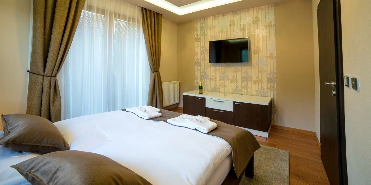 Izby Deluxe obsahujú moderný a farebne zladený nábytok, ktorý vás zaujme praktickým vyhotovením i umiestnením. Celý priestor pôsobí príjemným elegantným dojmom, ktorý prispieva k požadovanému pocitu komfortnej atmosféry. Bez problémov uspokojí aj pokročilé potreby návštevníkov ubytovacieho zariadenia. Je vybavená kúpeľňou s WC a sprchovým kútom. Samozrejmosťou je kvalitný LED televízor a Wi‑Fi pripojenie zdarma.