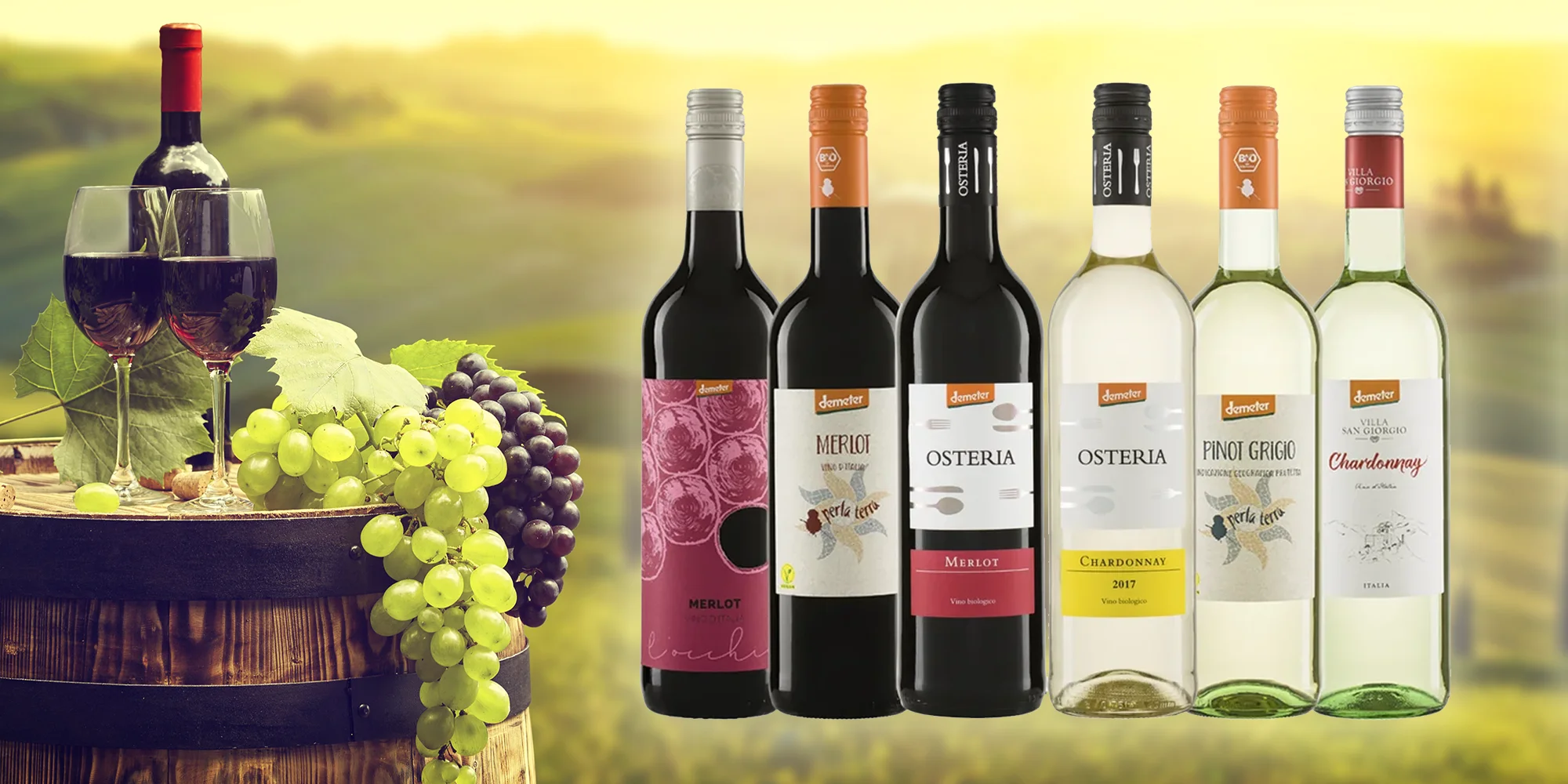 Ochutnajte kvalitné biele i červené BIO vína z Talianska, Francúzska, Španielska, Nemecka či Brazílie. Okrem „klasických“ vín nájdete v ponuke aj nízkoalkoholické (4,2–7% alk.) a nealkoholické varianty (0,5% alk.), ktoré sú obohatené o výťažky z bazy či malín, ríbezlí a brusníc.