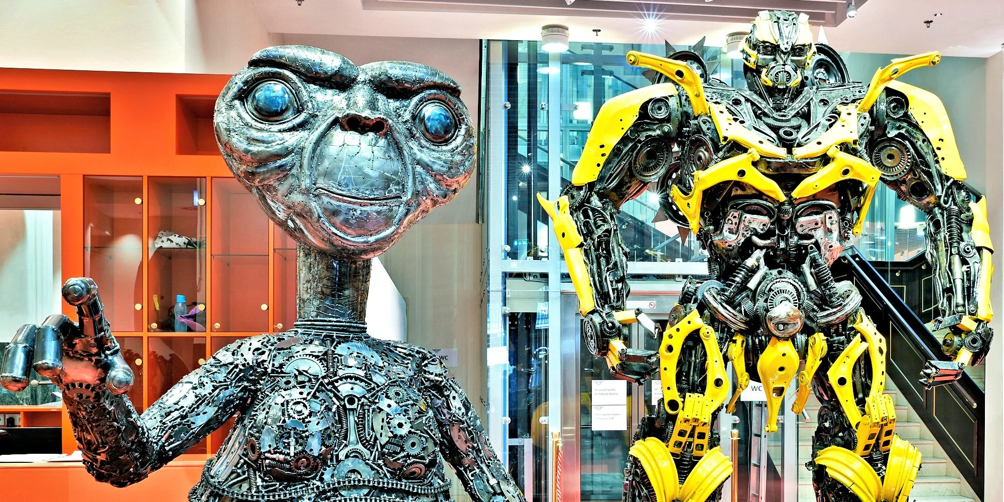 Preskúmajte exponáty vystavené v GALERII OCELOVÝCH FIGURÍN, ktoré vás ohromia svojou prepracovanosťou do najmenších detailov! Všetky exponáty sú vyrobené zo šrotu, z ktorého sa vďaka šikovným umelcom stali filmoví hrdinovia, celebrity, roboti, postavy z rozprávok, ale aj zvieratá a auto-moto hity. Recyklovaný kovový odpad tak dostal nový život.
