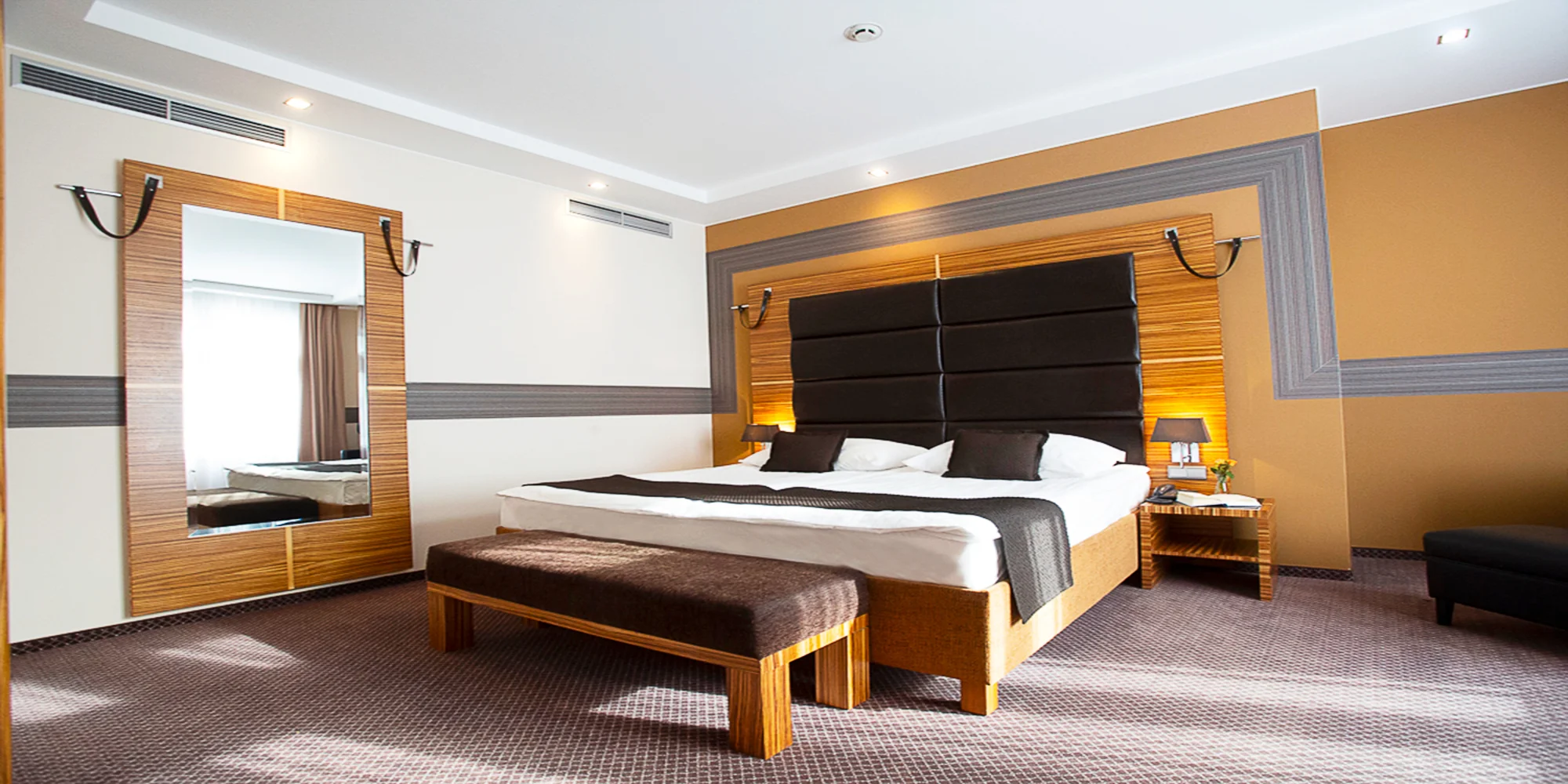 Čaká vás ubytovanie v dvojlôžkovej izbe s moderným nábytkom a klimatizáciou. Okrem toho v nej nájdete satelitnú TV a posedenie s minibarom. K dispozícii vám bude vlastná kúpeľňa so sprchovým kútom, toaletou a fénom na vlasy. Niektoré izby majú navyše aj balkón. V celom areáli hotela je bezplatné Wi‑Fi pripojenie na internet. A tešiť sa môžete i na bonus v podobe fľaše vína alebo drobného prekvapenia.