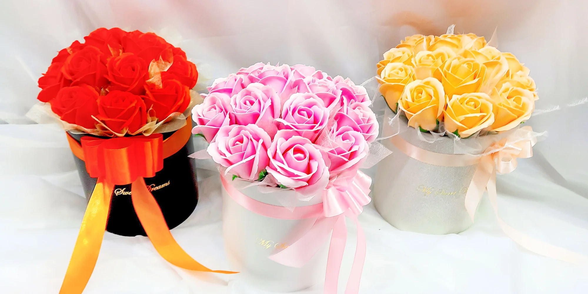 Každá mydlová kytica je ručne vyrábaná, preto si výrobca vyhradzuje právo na individualitu to znamená, že farba, alebo odtieň a počet kvetov mydlovej kytice sa môže líšiť od vystavenej fotografie.