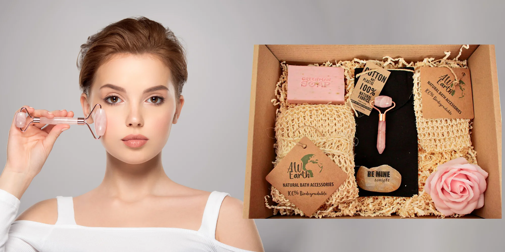 | Darčekový box, ktorý vás unesie krásnou jemnou vôňou. Obsahuje obľúbený mini valček na tvár zo vzácneho kameňa ruženínu, voňavé mydlo značky Greenman, sisalové vrecúčko na mydlo, sisalovú peelingovú špongiu, voňavú mydlovú ružu a kameň priateľstva, ktorého tvar a nápis bude pre vás prekvapením – pretože každý je jedinečný. |