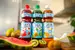 Jablková šťava z koncentrátu 1 %, glukózo-fruktózový sirup, voda, kyselina citrónová aróma, farbivá: tartrazín, brilantná modrá FCF, glycerolestery živíc z dreva, arabská guma. -