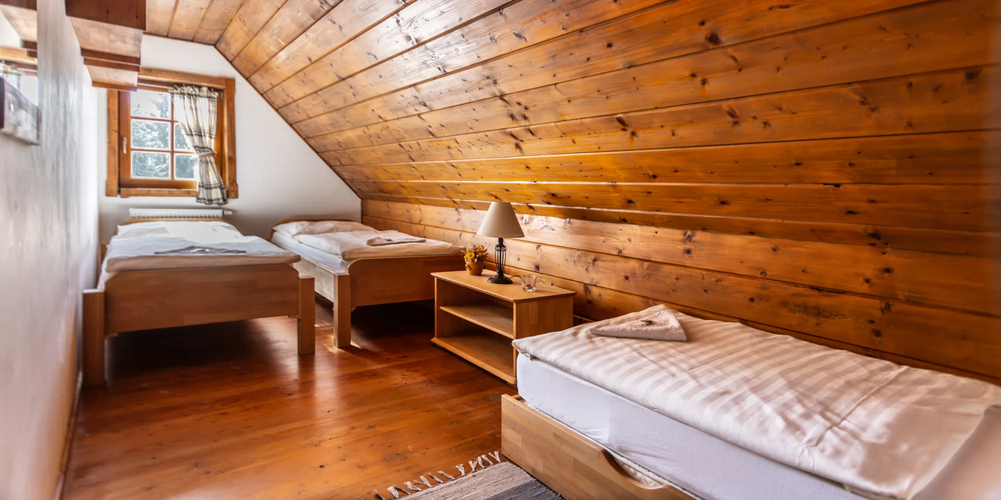 - ubytovanie v drevenici – 2× mezonetová štvorlôžková izba, 1× trojlôžková, 1× dvojlôžková a 2× rozkladací gauč