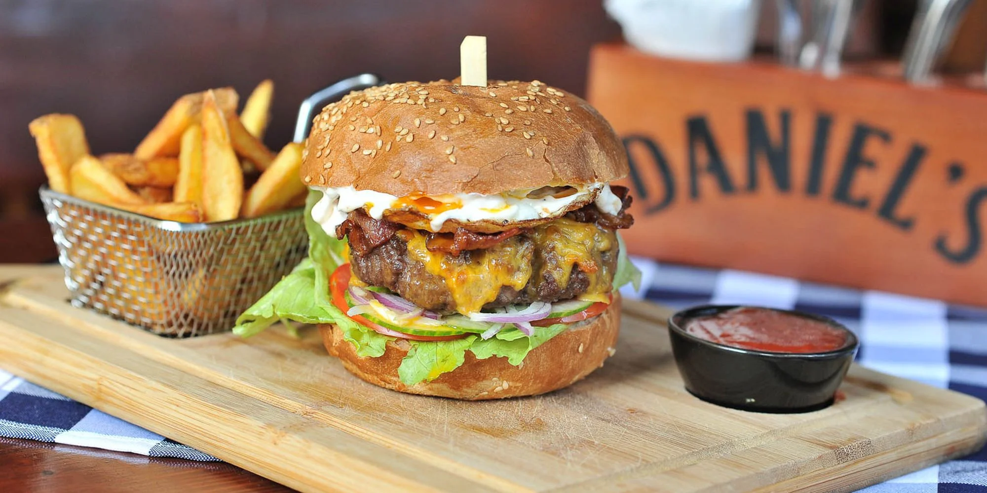 Nie jeden. Nie dva. Rovno päť druhov výborných burgerov, ktoré si môžete objednať v Daniel's pub & restaurant! Slasť z (nielen) prvého zahryznutia! A keď sa k tomu pridajú neodmysliteľné zlatisté hranolčeky, nič už nemôže byť lepšie!