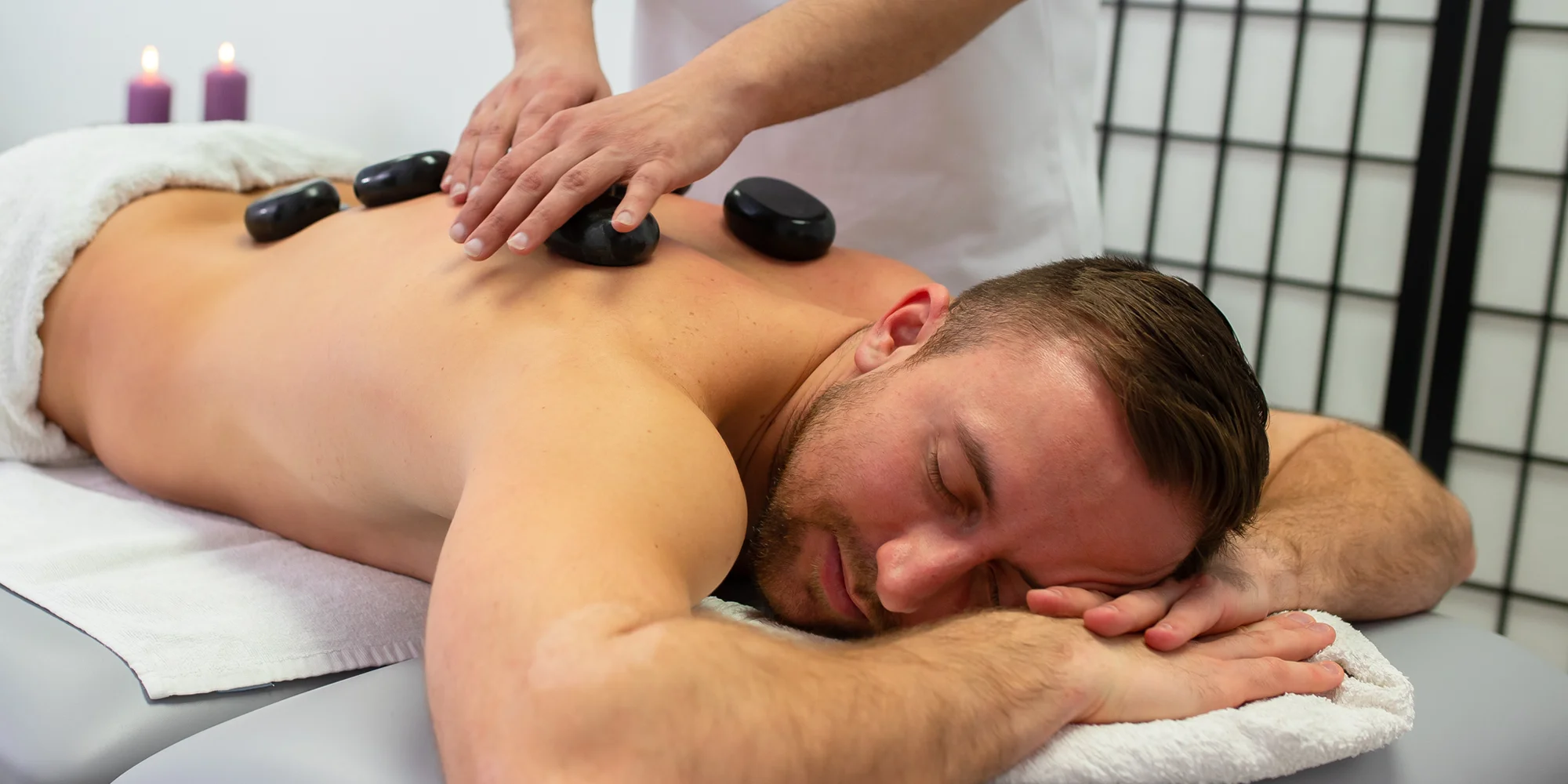 - Masáž lávovými kameňmi – masáž chrbta, šije, trapézov, krížovej oblasti