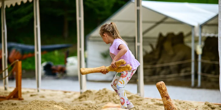 Kráľovstvo Hrabovo si v tomto roku pripravilo pre návštevníkov jedinečnú a najväčšiu pieskovú výstavu na tému dinosaurov. Celkovo sa na výstavbu použilo takmer 500 ton piesku. Zažijete jedinečnú možnosť vrátiť sa niekoľko miliónov rokov späť v čase a spoznáte rôzne druhy dinosaurov.