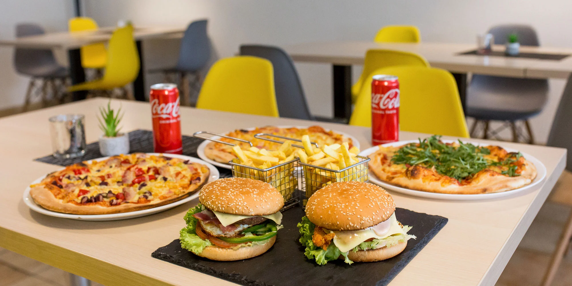 1 x Combo “MINI” (1 x pizza, 2 x hamburger, 2 x hranolčeky + 2 x Coca-cola)