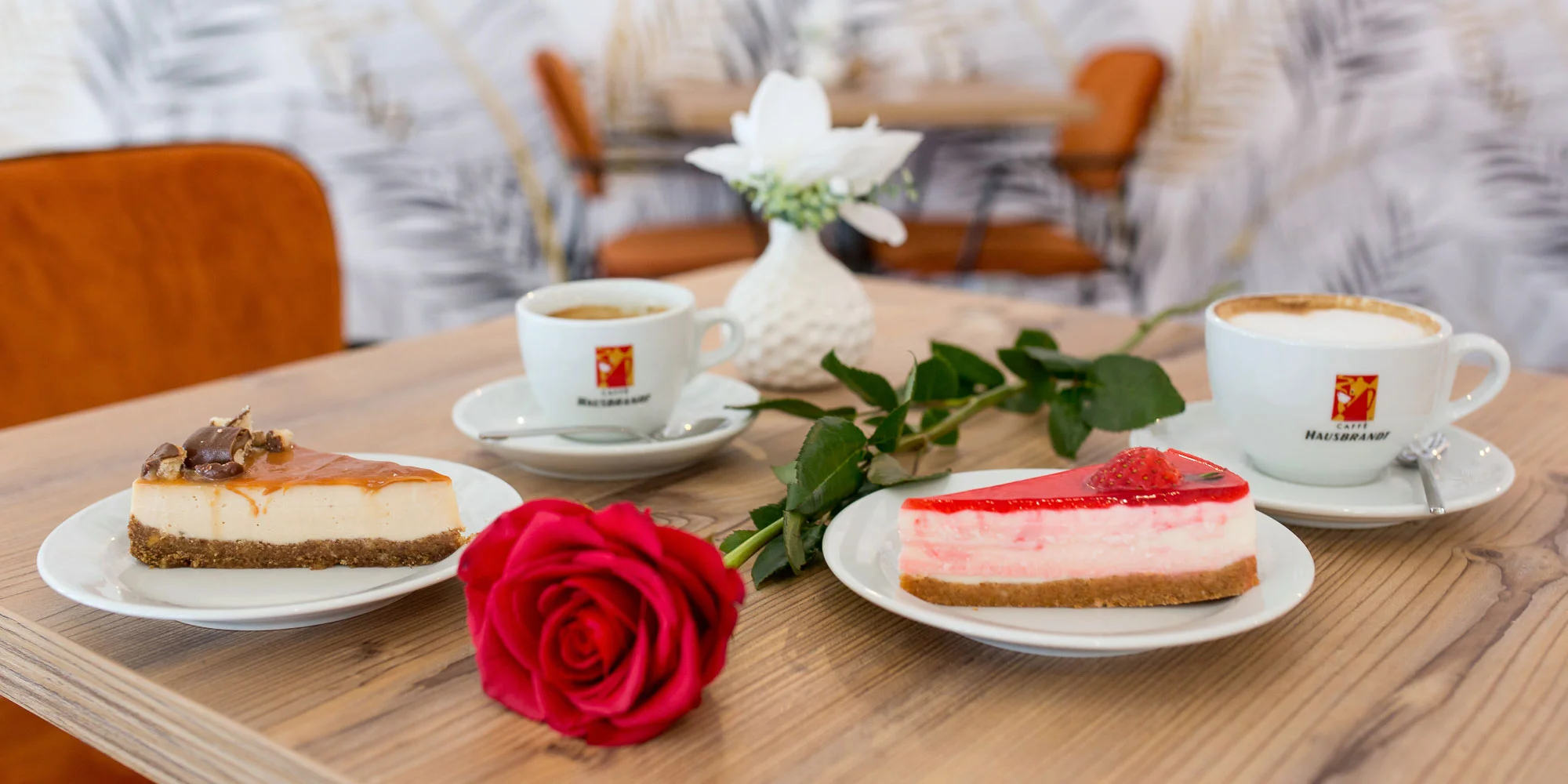 Potešte niekoho, na kom vám záleží a spríjemnite mu deň lahodnou kávou, cheesecakom či veterníkom a nádhernou červenou ružou. Ak však neholduje práve týmto dvom zákuskom, tak si určite pochutnáte na nadýchanom krémeši či bezlepkovom koláči, ku ktorým neodmysliteľne patrí voňavá káva podľa vášho výberu (espresso, ristretto alebo cappuccino). V letných mesiacoch vás príjemne schladí pohár s točenou zmrzlinou a šľahačkou alebo osviežujúca ľadová káva.