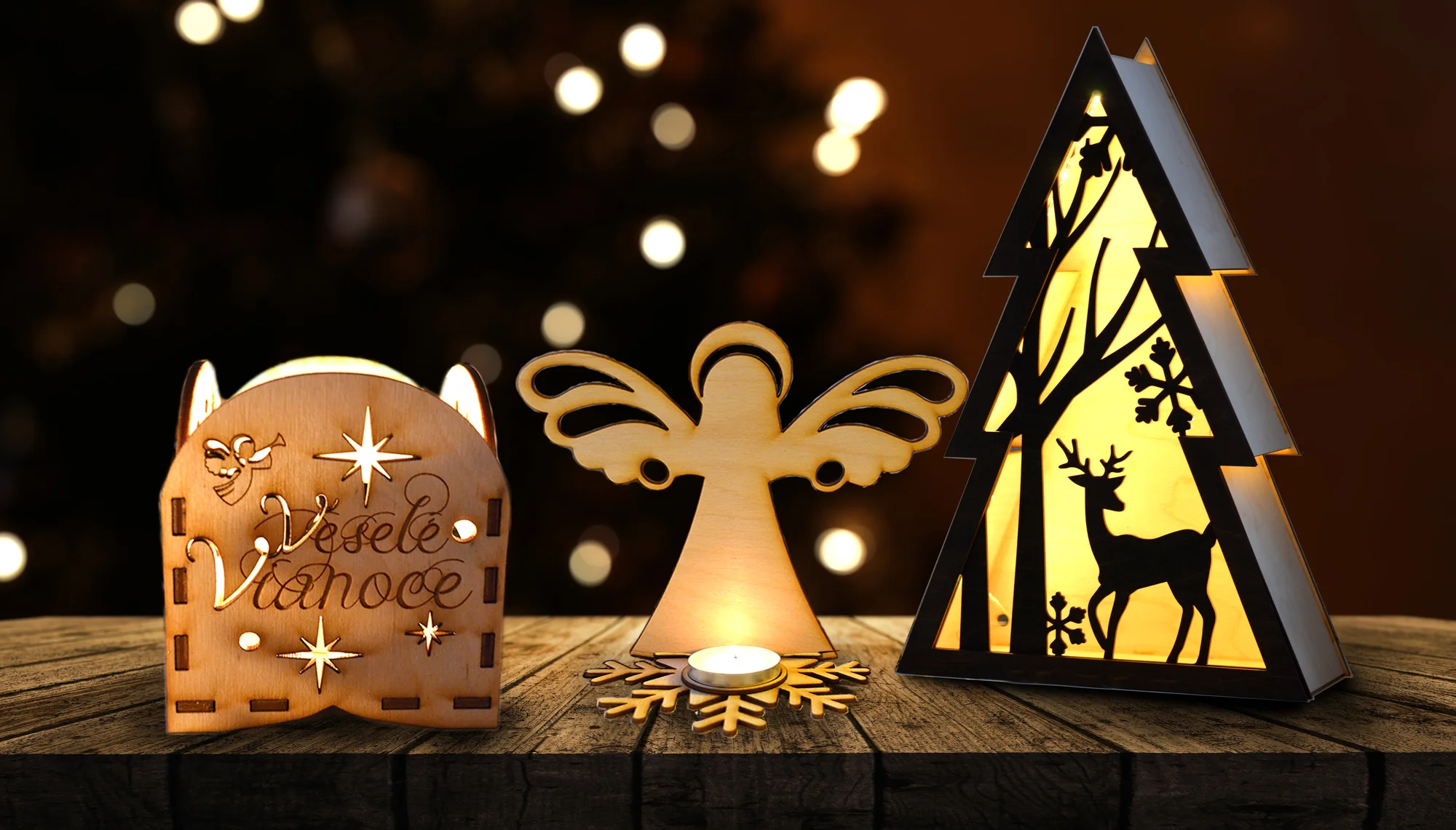Vybrať si môžete laserom vyrobený a gravírovaný drevený svietnik, adventný veniec či vyrezávaný drevený domček s podsvietením. Štvorstranné svietniky majú z každej strany iný obrázok. Drevený veniec si môžete vybrať vo variante na stôl alebo na parapetu okna. Tak už ste rozhodnutí, ktorá dekorácia vám popri pozeraní Popolušky vyčarí tú správnu atmosféru?