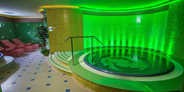 Doprajte si dokonalé prekrvenie svojho tela s hydromasážnymi tryskami a vzdušným gejzírom vo whirlpool bazéne či prekrvenie chodidiel pomocou kameňov v Kneipovom kúpeli. Pre saunových labužníkov je pripravený ochladzovací bazén a ľadové vedro. Upozornenie: Vstup do wellness centra je povolený len osobám nad 15 rokov.