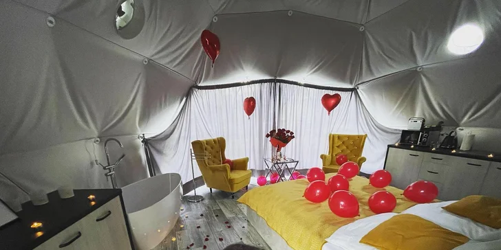 - Ubytovanie v jednej z dostupných kabín (v prípade, že máte záujem o konkrétnu kupolu, kontaktujte ubytovacie zariadenie vopred)