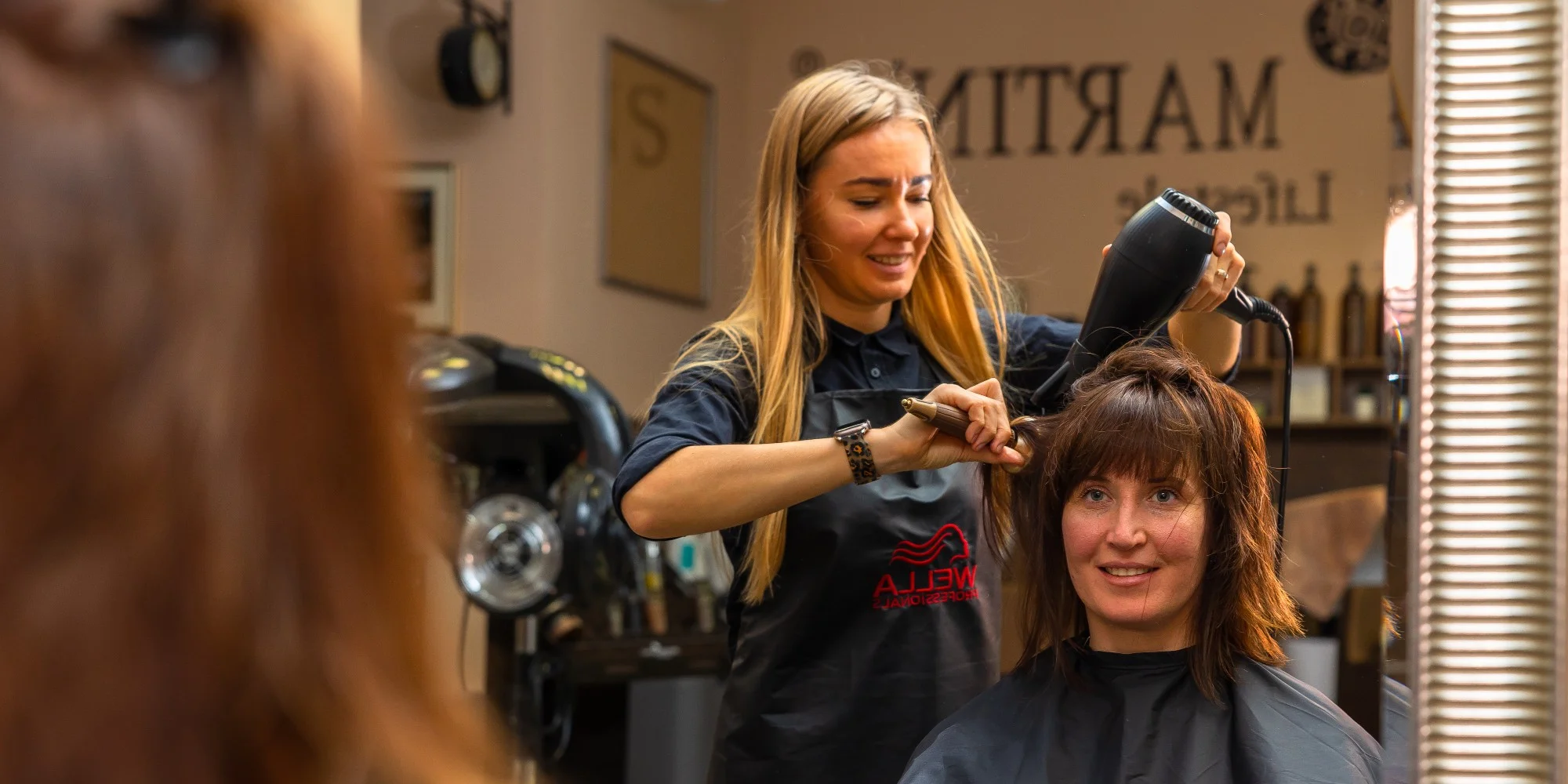 - Podstrihnutie, strih podľa želania zákazníčky (polodlhé a dlhé vlasy s dĺžkou pod plecia)