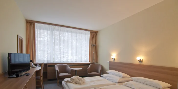 - Ubytovanie v dvojlôžkovej izbe Comfort v kúpeľnom hoteli Krym alebo Slovakia pre 2 osoby – podľa dostupných kapacít