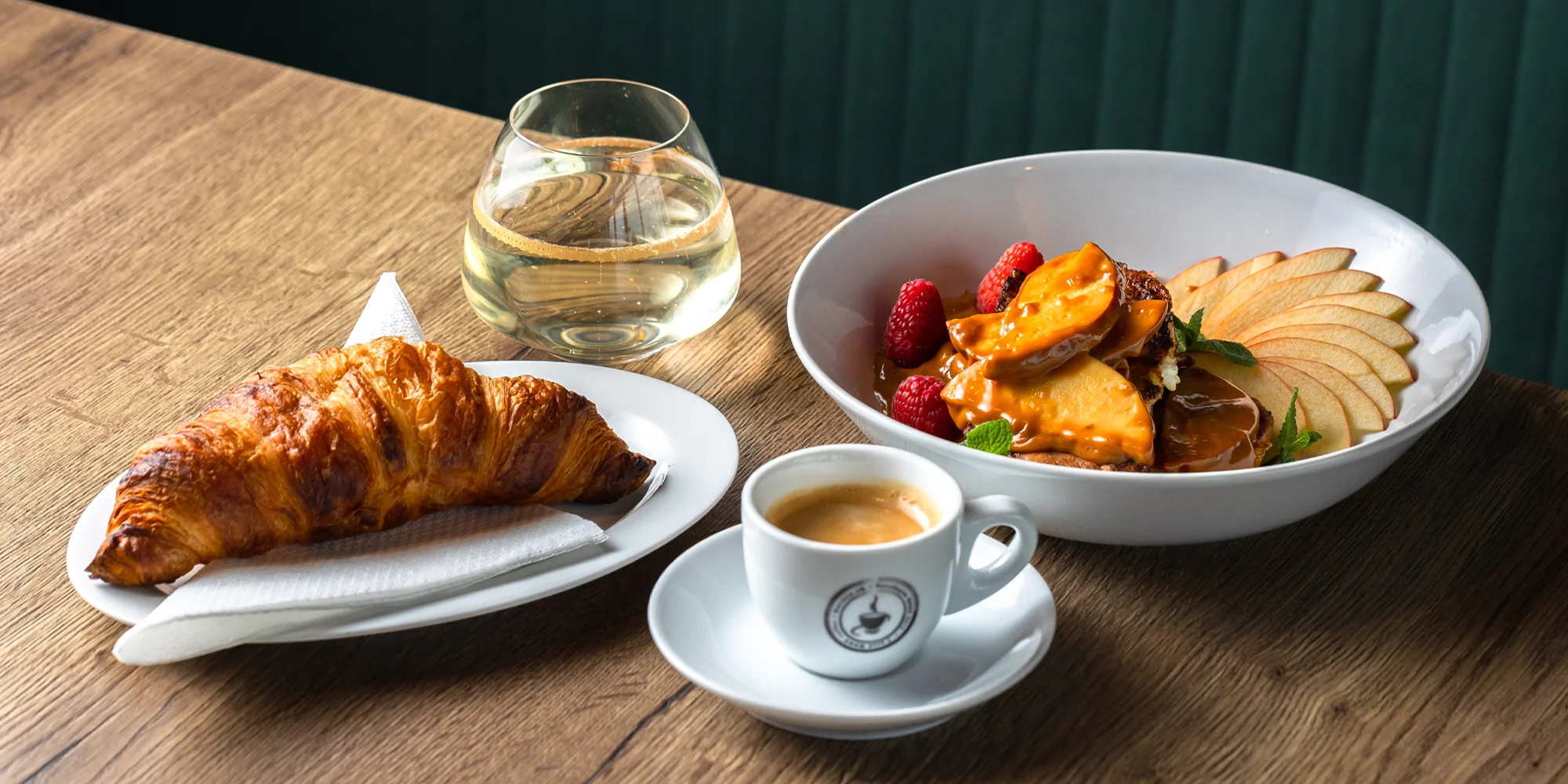 Nakopnite sa do nového dňa v inšpiratívnej kaviarni ADRIANA a doprajte si bohaté raňajkové menu. Pochutnáte si na chrumkavom croissante, vyskúšate delikatesné vajíčka Benedikt s holandskou omáčkou a šunkou, slaninkou alebo lososom a nakoniec si dáte sladkú bodku – brioche toast s karamelizovanými jablkami.