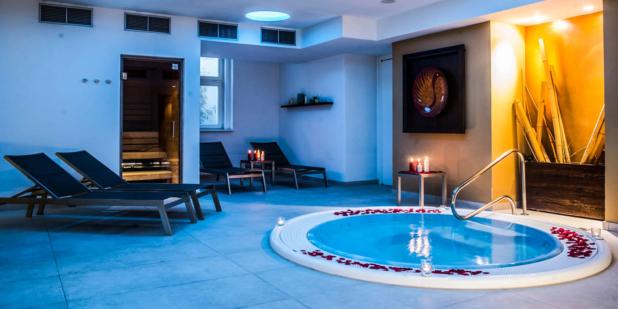 Doprajte si blahodarné účinky fínskej či parnej aroma sauny, uvoľnite svoje stuhnuté svalstvo v bublinkovej vírivke alebo si užite dotyk vichy sprchy. Ak chcete svoj relax povýšiť na ďalšiu úroveň, doprajte si k pobytu vo wellness aj 60 minútovú masáž lávovými kameňmi.