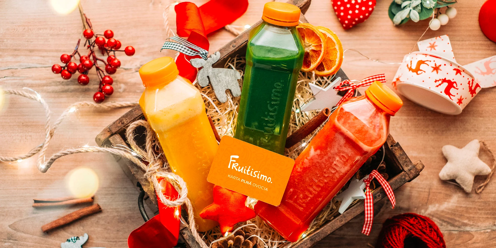 Doprajte svojim blízkym darčekovú kartu plnú ovocia a darujte im na Vianoce zdravie. Fruitisimo darčeková karta vám a vašim blízkym zaistí pravidelný prísun vitamínov v podobe lahodných čerstvých nápojov, chutnej desiaty alebo sladkého maškrtenia.