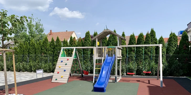 Parádny oddych aj zábavu ponúkajú termálne kúpele a aquapark Sárvár, užite si adrenalínovú jazdu na tobogáne alebo sa ponorte do sveta blahodárnych účinkov liečebných kúpeľov. Vybrať si môžete aj špeciálny variant s celodenným vstupom pre dve osoby. Tí najmenší sa vyšantia na detskom ihrisku, ktoré sa nachádza priamo pri rezidencii.