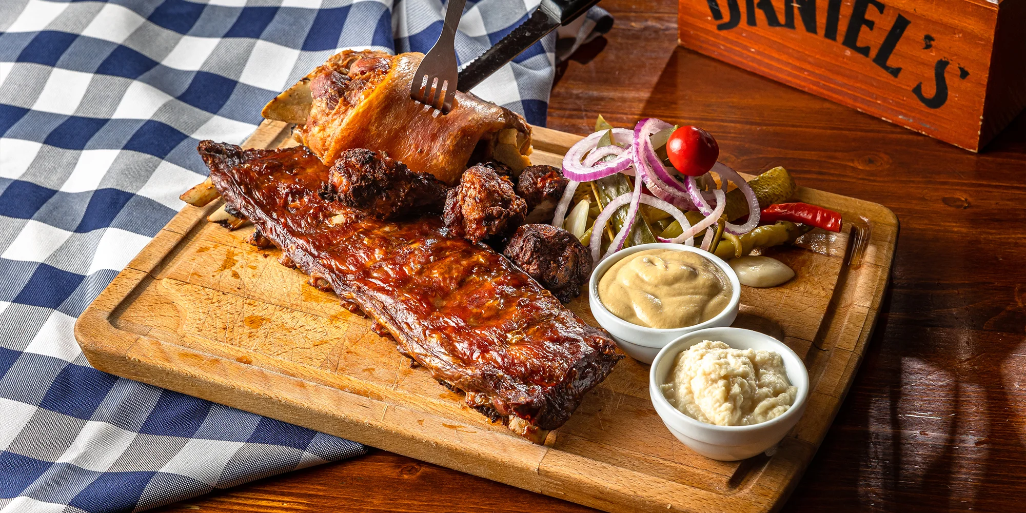 Vezmite priateľov a pustite sa do kopcom naloženej mäsovej dosky Daniels.