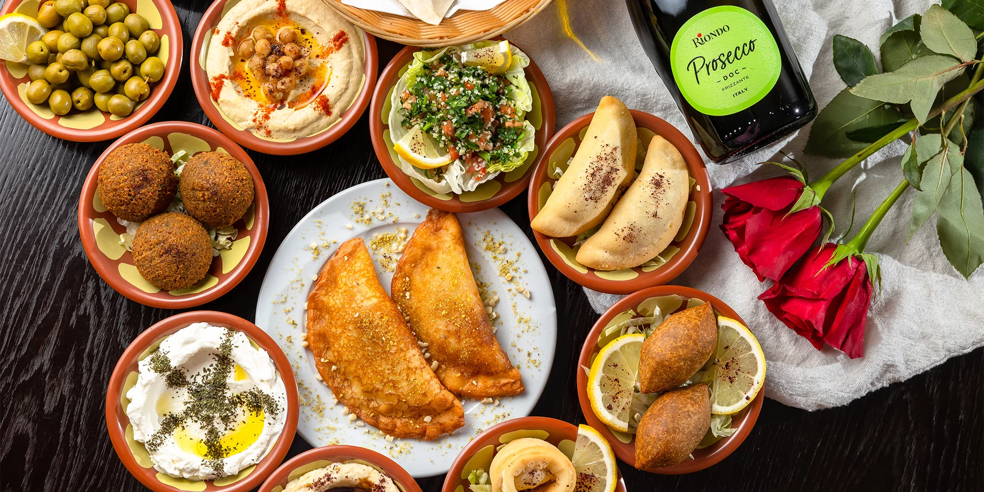 Či už sa sem vyberiete na chutný obed alebo večeru, môžete si byť istí, že hladní rozhodne nezostanete. V každom menu nájdete obľúbený falafel spolu s nátierkami, prílohami aj dezertom v podobe palaciniek plnených orechmi a medovou polevou. Dva varianty navyše obsahujú aj fľašu lahodného Prosecca, ktorým si môžete spríjemniť romantickú večeru vo dvojici.