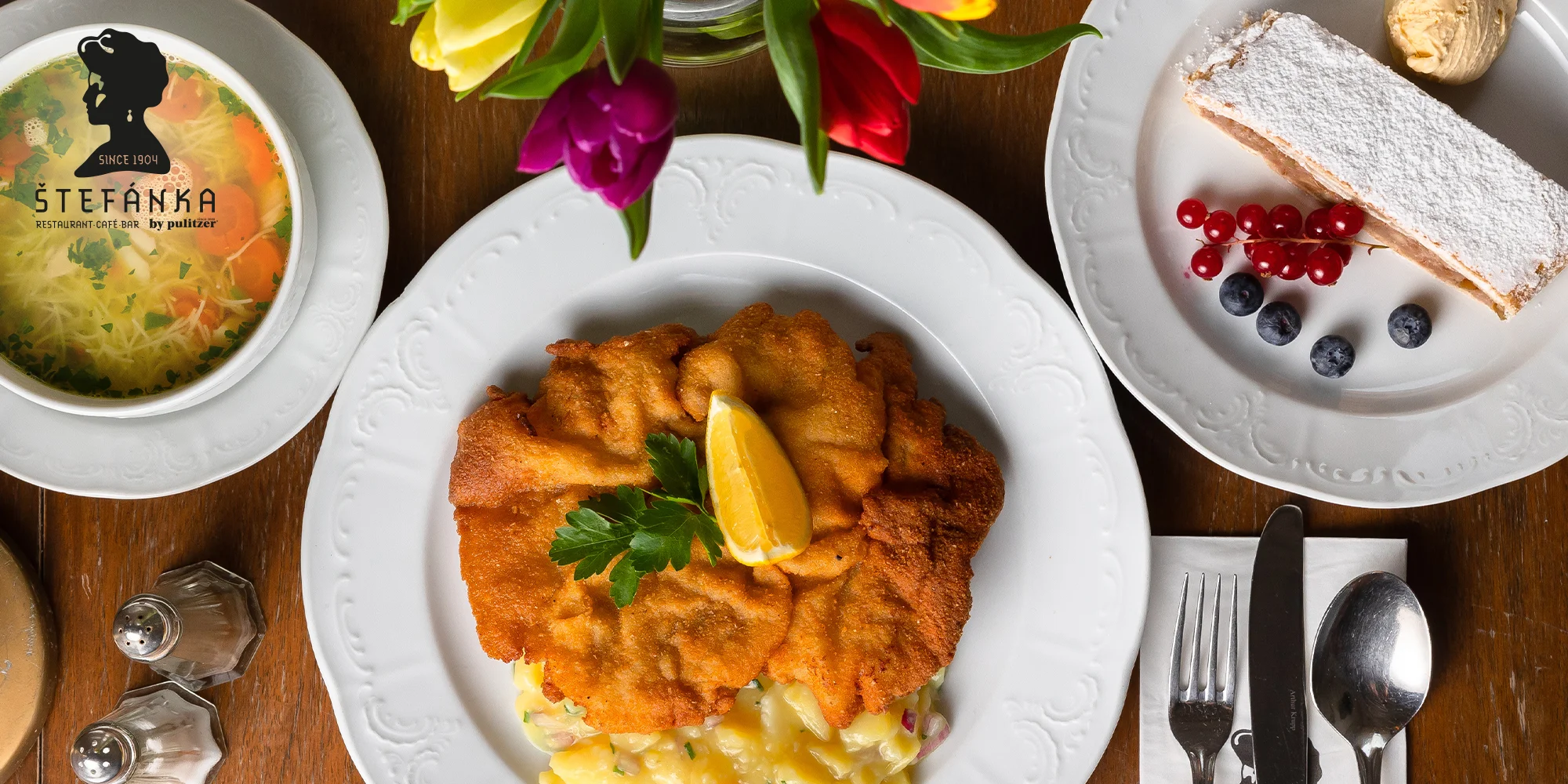 A viete čo je na tom najlepšie? Že si túto baštu môžete dopriať nielen počas slávnostnej nedele, ale každý deň v týždni! Pozývame vás do legendárnej reštaurácie Štefánka by Pulitzer. Dochrumkava vyprážaný a natenko vyklepaný viedenský teľací rezeň so slovenským zemiakovým šalátom a citrónom už rozvoniava v Starom Meste!