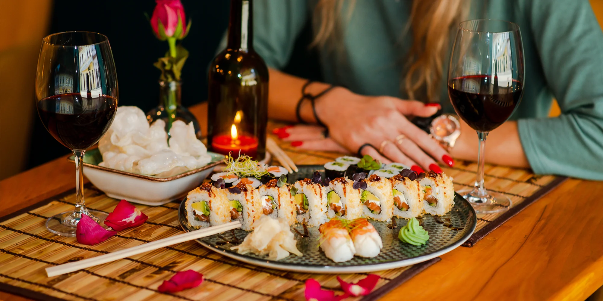 Nechajte sa zlákať diaľkami a ochutnajte vyvážené Poke Bowl s lososom plné ryže a čerstvej zeleniny. Alebo máte radšej sushi? Ste na správnej adrese – v ponuke reštaurácie Sushinami nájdete aj romantický sushi set pre 2 osoby s 22 lahodnými a čerstvými kúskami. Iskrivé chvíľky s vašou láskou vám spríjemní aj pohár vína a krevetové čipsy.