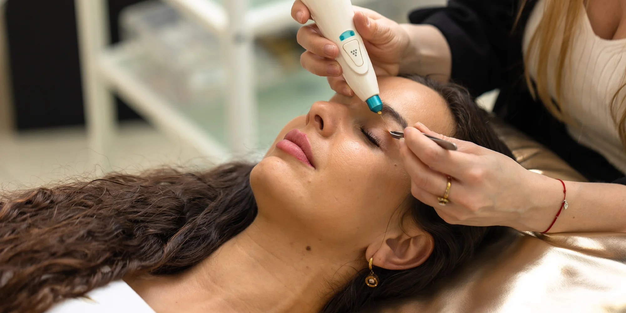 - Pred ošetrením plazmovým perom na očné viečka: