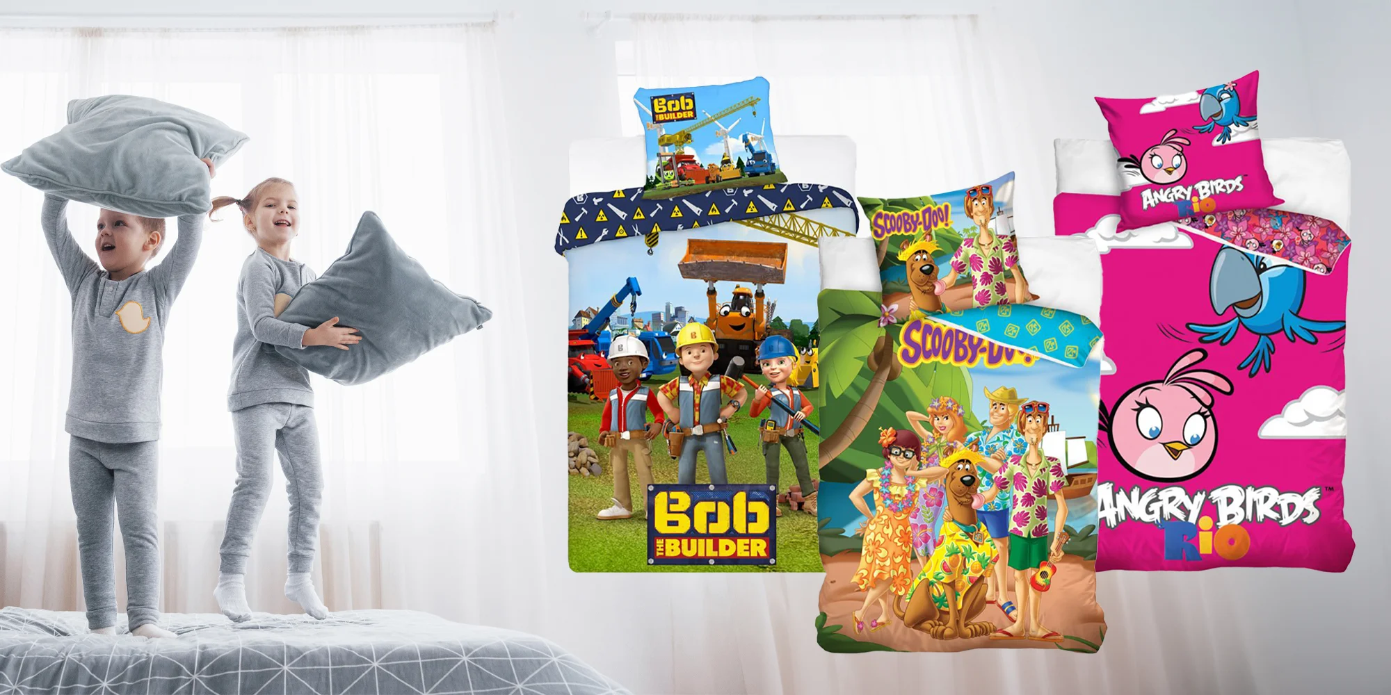 Oblečte deťom posteľ do ich obľúbených motívov, nech majú tie najrozprávkovejšie sny. Zaspávať budú so zvieratkami, postavičkami z animákov aj pod ochranou dinosaurov z Jurského parku alebo kúziel z Harryho Pottera. Bavlnené obliečky sa hodia na veľkú posteľ, v sade je vždy jeden vankúš (70 × 90 cm) a jedna prikrývka (140 × 200 cm), oba kúsky sú opatrené zipsom. Tak dobrú noc!