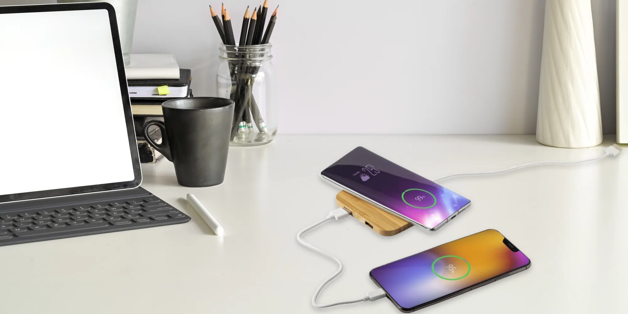Personalizovaná bambusová bezdrôtová nabíjačka 5W pracuje s telefónmi s možnosťou induktívneho nabíjania. Disponuje 2 výstupmi USB DC 5V / 2.1A a súčasťou balenia je kábel micro USB. Bezdrôtové nabíjanie je kompatibilné so všetkými telefónmi podporujúcimi QI, ako sú najnovšie generácie Android, iPhone 8 a vyššie. Nabíjačka je vyrobená priamo na Slovensku.
