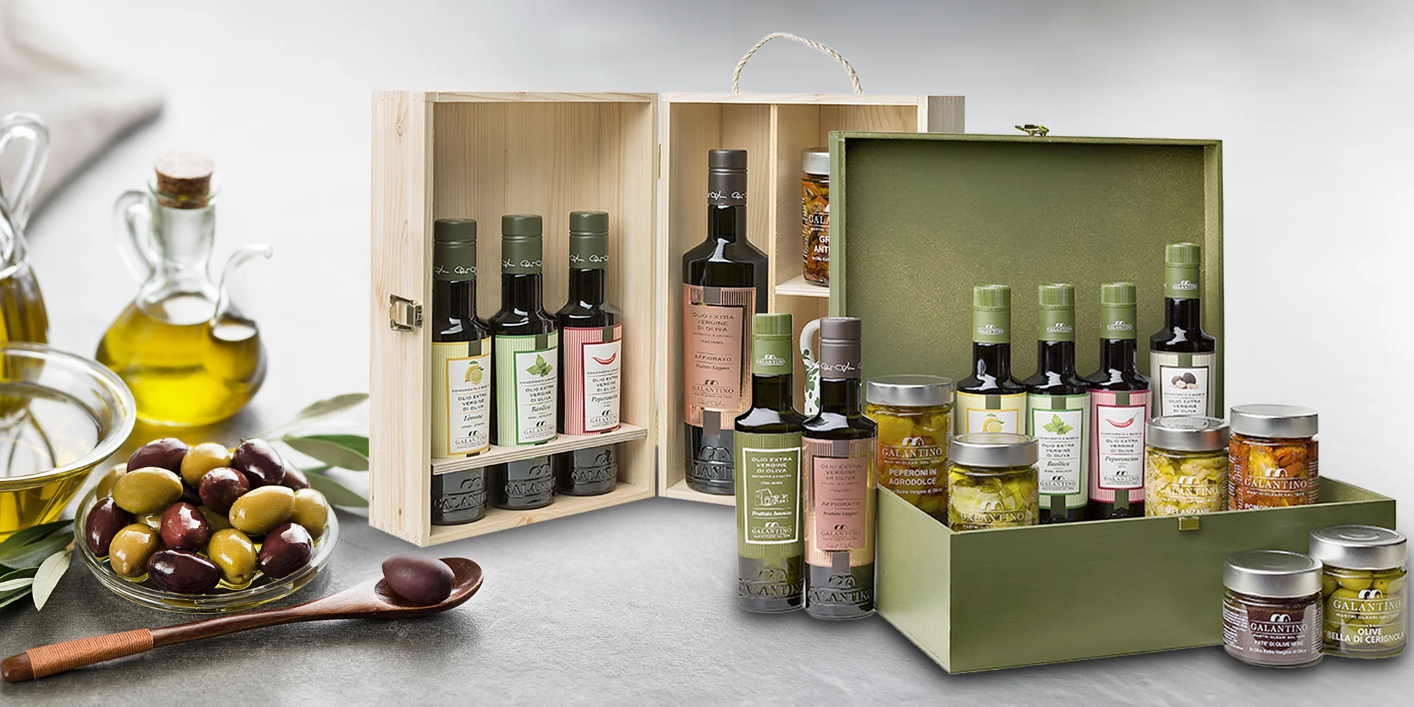 Vneste do svojho života závan luxusu a ochutnajte exkluzívne produkty, ktoré vás prenesú priamo na slnečné pobrežie Talianska. Darčekové balíčky po 3 až 12 kusoch talianskych produktov, jedinečný produkt na slovenskom trhu, obsahujú napríklad extra panenský olivový olej, zelené olivy v slanom náleve, ručne vyrobenú keramickú dózu Fantasia, sušené paradajky, artičoky, pastu z čiernych olív a rôzne druhy vzácnych olejov. To všetko reprezentatívne zabalené v krásnych drevených boxoch, ktoré určite urobia radosť nejednému gurmánovi čo vášmu srdcu milej osobe.