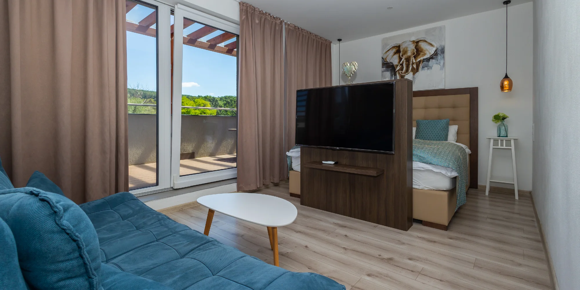 - Ubytovanie v nových klimatizovaných Apartmánoch Pulse pre 2 osoby s vybavením: