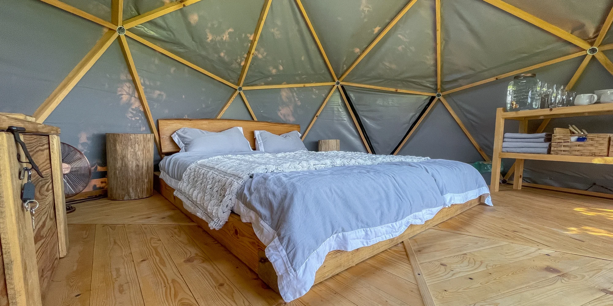 Pohodlne sa tu ubytujú dvaja hostia. Kupola je navrhnutá vkusne a moderne, nechýba ani priestranná terasa. V interiéri nájdete manželskú posteľ, posedenie s 2 pohodlnými kreslami a krásnym výhľadom. Kupola je tiež vybavená solárnou elektrinou, čo umožňuje pripojenie elektronických zariadení. V chladných mesiacoch vám zabezpečuje príjemnú teplotu výkonný ohrievač, ktorý ovládate pomocou displeja.