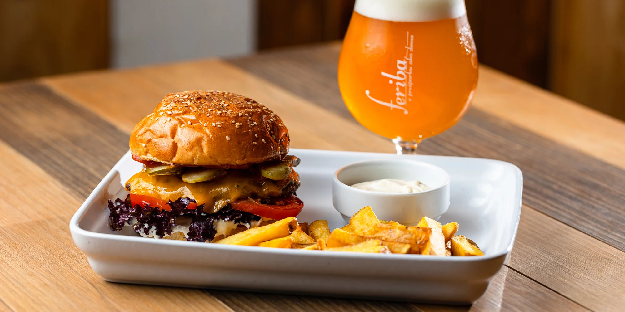 Nielen pivom je človek živý! Vo Feribe pre vás majú nachystanú aj kráľovskú žranicu! Pošmakovať si môžete na hamburgeri klasik s hovädzím mäsom chuck roll, coleslawom a zemiakovými hranolčekmi. V ponuke je aj tatarák s hriankami a topinkami.