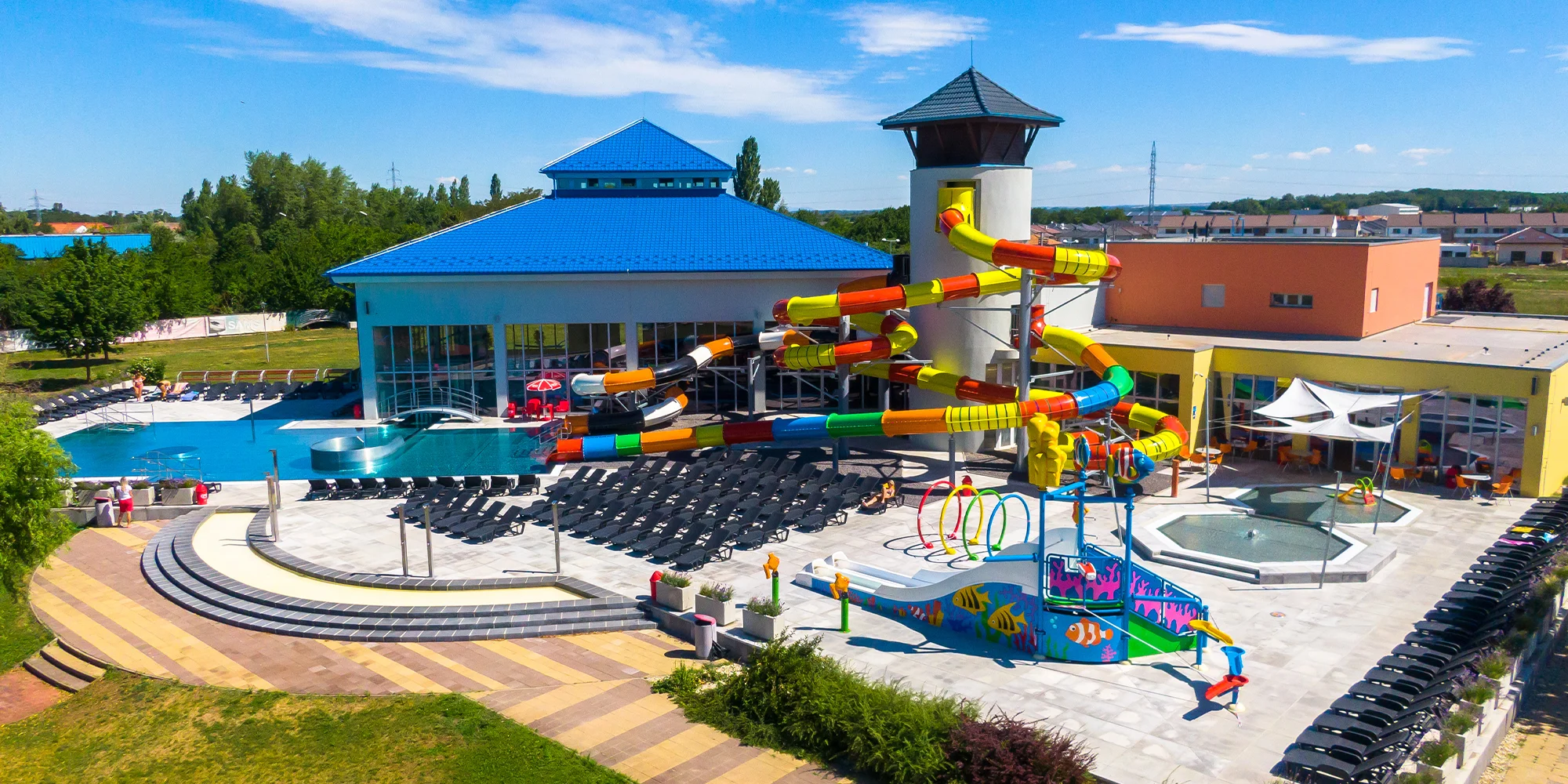 Tí najmenší sa vybláznia v detskom bazéne so šmýkačkou a fontánou. Odvážlivci môžu vyskúšať aj adrenalínový uzavretý tobogan. Teploty jednotlivých bazénov si môžete pozrieť tu.
