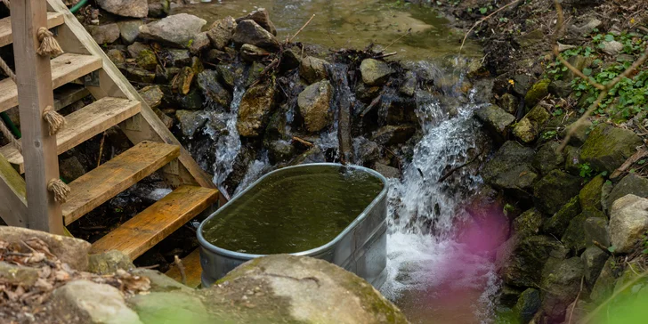 - Ochladzovacia kaďa s vodou pritekajúcou z lesného potoka