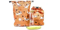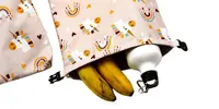 Stačí desiatu zarolovať dovnútra a veci okolo sú razom chránené. Rovnako tak môžete vrecko využiť aj na prenášanie mokrých plaviek. A funguje to aj obrátene. Napríklad na túre sa v ňom dá nosiť suché oblečenie, ktoré tak ľahko uchránite pred dažďom. Navyše, si môžete vybrať až zo 46 krásnych motívov!