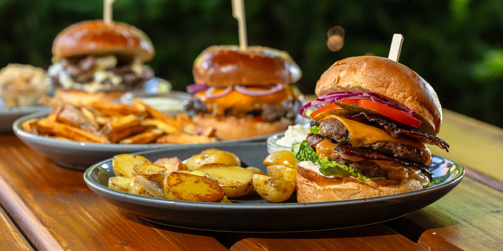 K tomu poslúži šesť druhov parádnych burgerov plných všetkého, čo máte tak radi. Ku každému burgeru sa podáva 10 druhov lahodných dipov a domáce zemiakové alebo batatové hranolčeky.