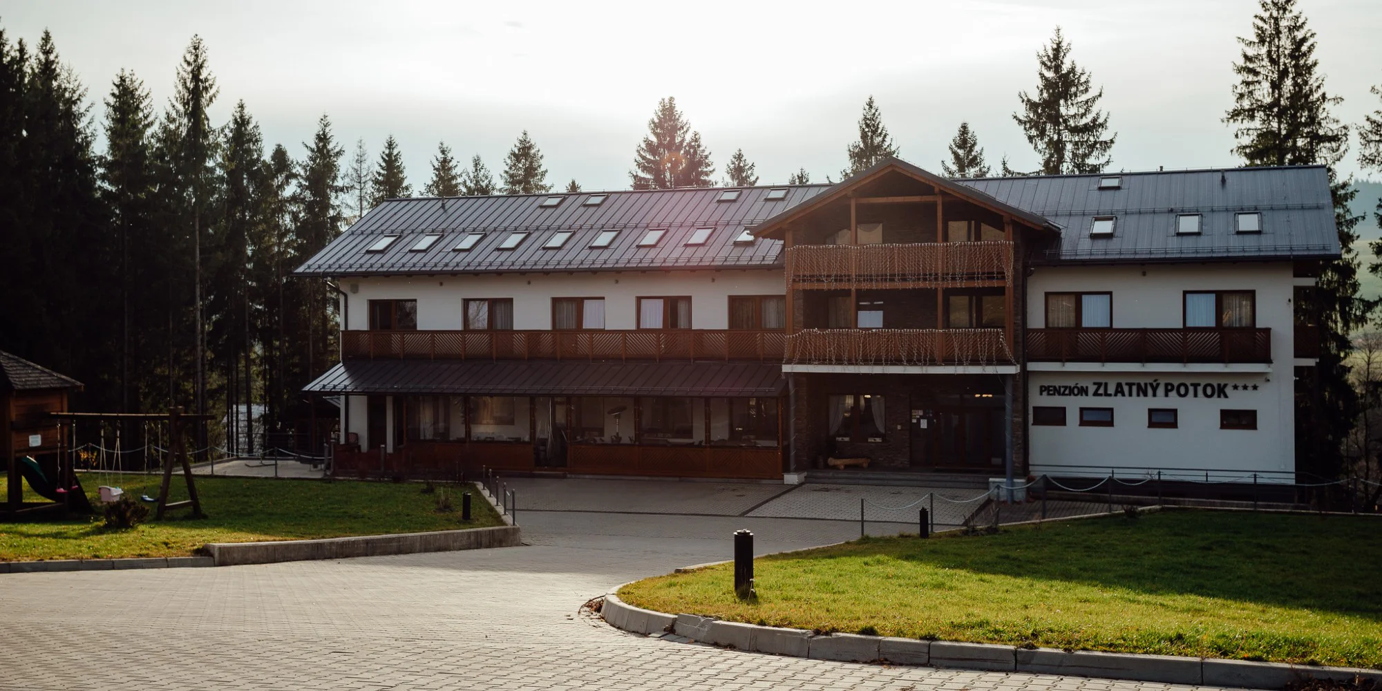 Penzión ZLATNÝ POTOK*** sa nachádza v tichom a krásnom prostredí na Orave v okrajovej časti obce Mútne, neďaleko poľnohospodárskeho družstva, kde si hostia môžu zajazdiť na koňoch a pozrieť si chov hovädzieho dobytku, kačky, husi, emu, sliepky či prasiatka. Toto miesto je ideálne pre návštevníkov, ktorí majú radi pokoj, prírodu, zvieratá a vidiecke prostredie.