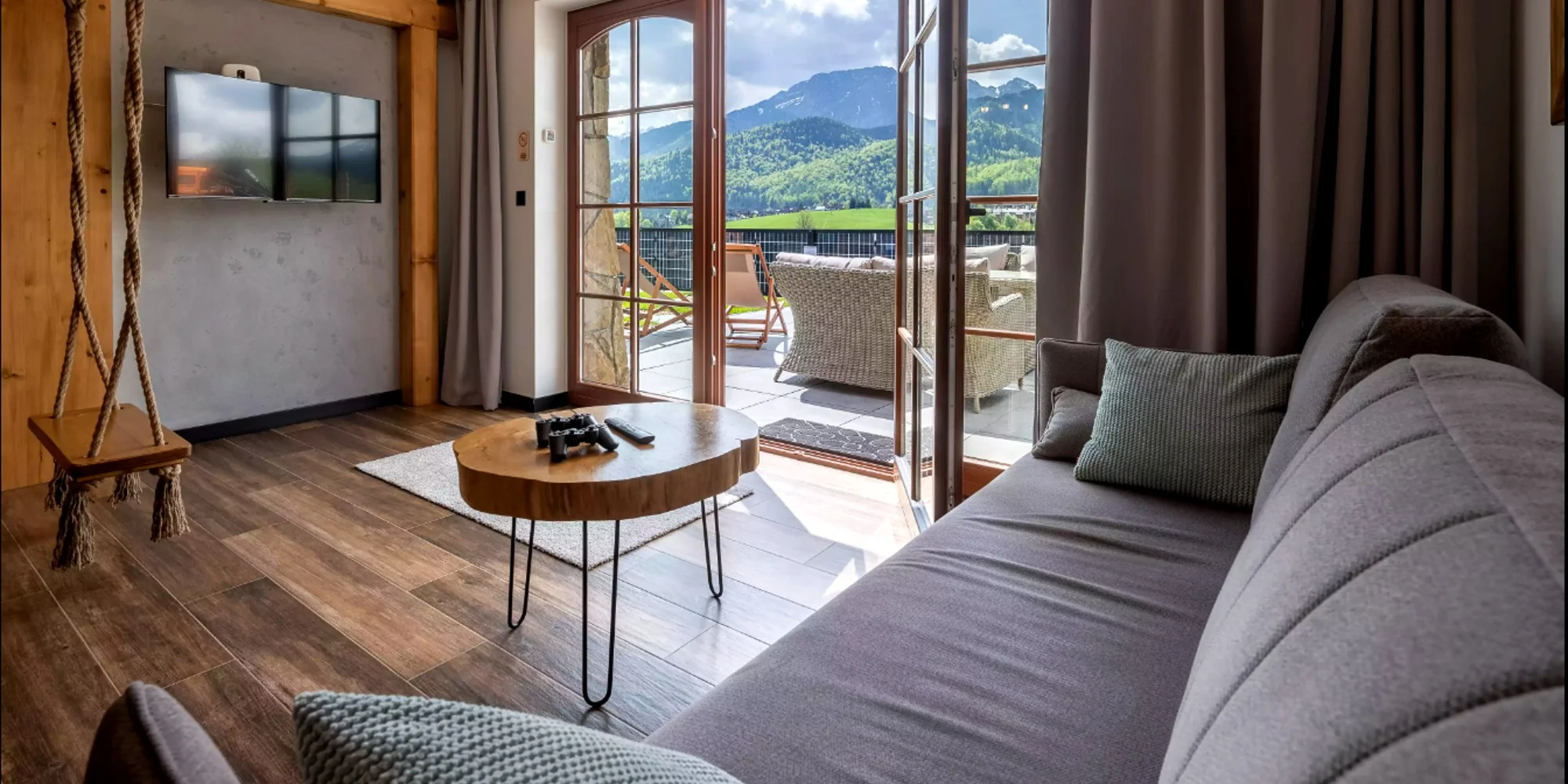 Jacuzzi na terase s výhľadom na horský masív Giewont