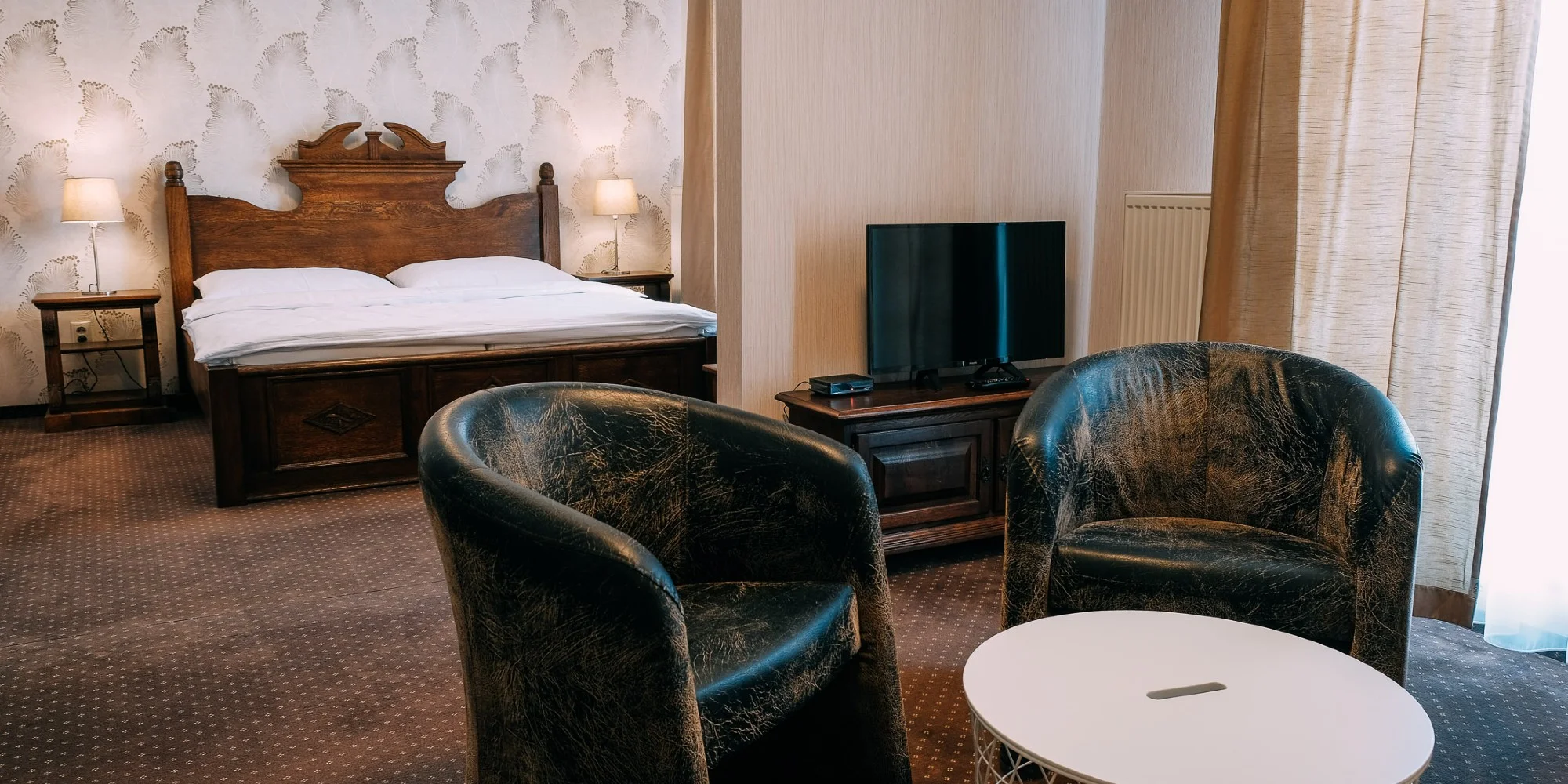 K dispozícii budete mať všetky výdobytky modernej technológie od televízie, klimatizácie, setu na prípravu kávy/čaju až po bezplatné Wi‑Fi pripojenie na internet. Samozrejmosťou je aj vlastná kúpeľňa s vaňou alebo sprchovým kútom z liateho mramoru, toaletou, fénom na vlasy a kozmetickými potrebami. Dvojlôžkové izby majú výhľad na námestie či do záhrady. Na privítanie dostanete darček, v minibare budú pre vás pripravené remeselné fľaškové pivá. V prípade potreby je dostupná i detská postieľka.